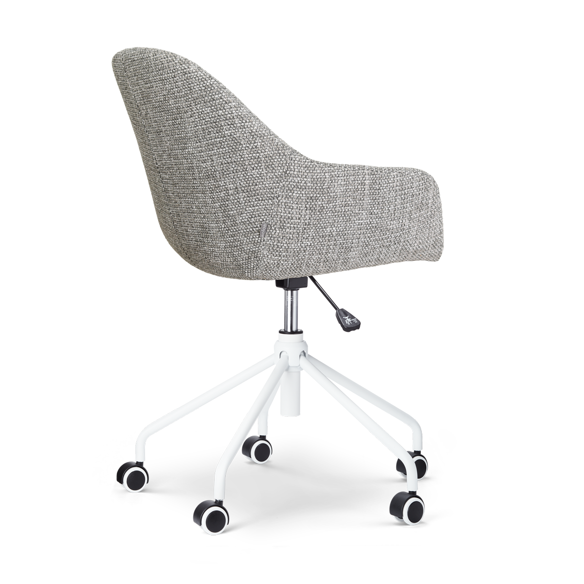 Deze bureaustoel is niet alleen erg praktisch voor aan je bureau, maar is daarnaast ook erg stijlvol en sfeervol. Het metalen onderstel is voorzien van vijf wieltjes zodat je gemakkelijk langs je bureau kan bewegen. Met de hendel kan je de zithoogte verstellen en zorg je ervoor dat je overal op de hoogte zit. De stijlvolle kuipzitting heeft schuin aflopende armleuningen voor extra comfort tijdens het werken of studeren. De zitting is bekleed met luxe stof of bouclé, zodat je niet alleen lekker zacht zit maar ook een sfeervolle werkplek kan creëren met de Nout-Mae bureaustoel. Het Nout onderstel is bovendien zowel in zwart als wit verkrijgbaar, waardoor je deze stoel helemaal aan jouw smaak kan aanpassen. Liever een bureaustoel zonder armleuning maar wel in deze stijl? Neem dan eens een kijkje bij de Nout-Isa bureaustoel van Nolon.