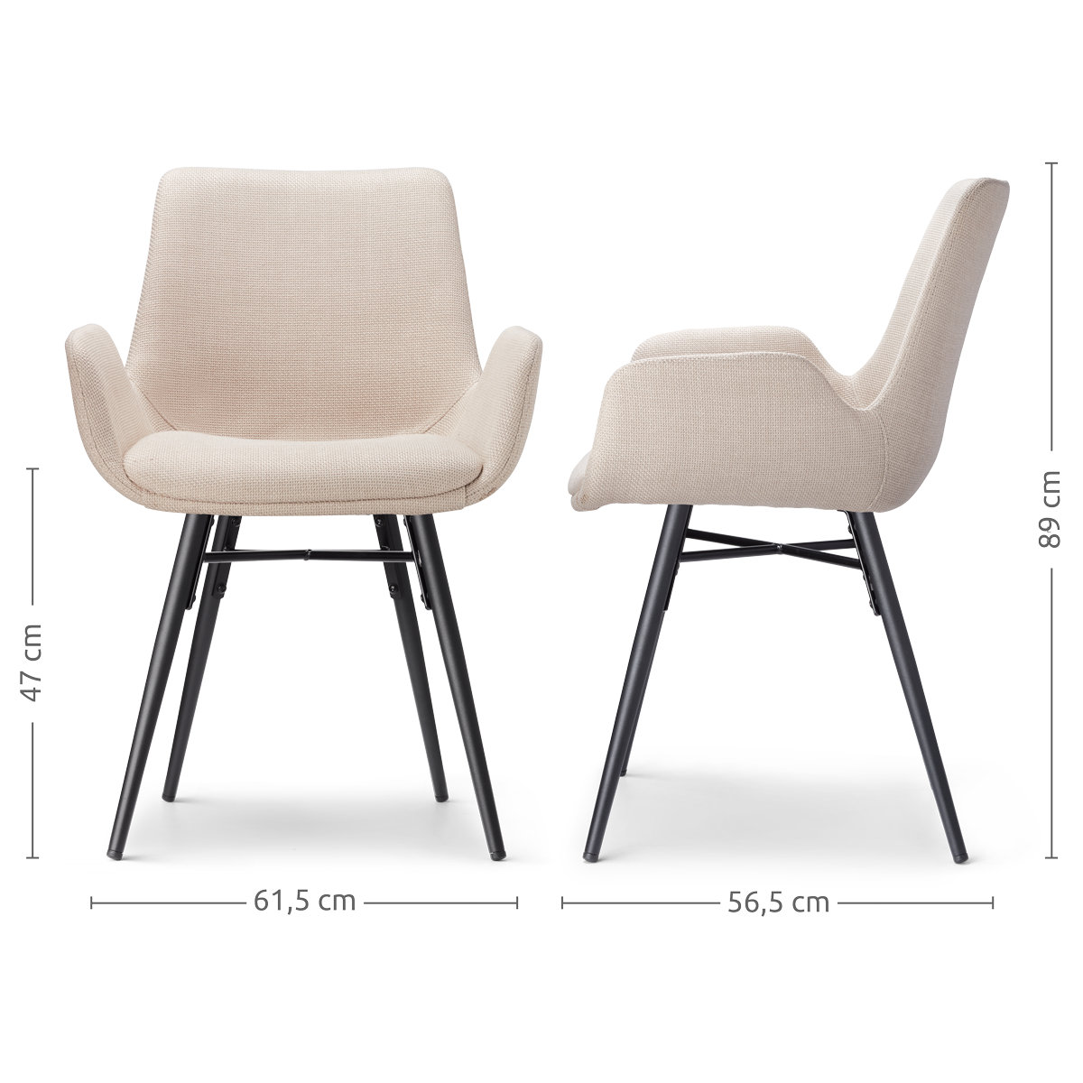 Nova-Eef eetkamerstoel beige - zwart onderstel - set van 2