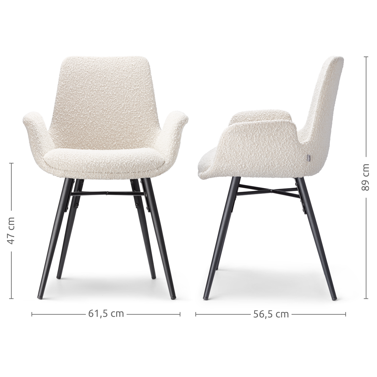 Nova-Eef eetkamerstoel bouclé beige - zwart onderstel - set van 2