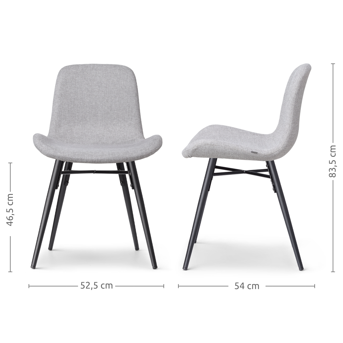 Nova-Fé eetkamerstoel lichtgrijs - zwart onderstel