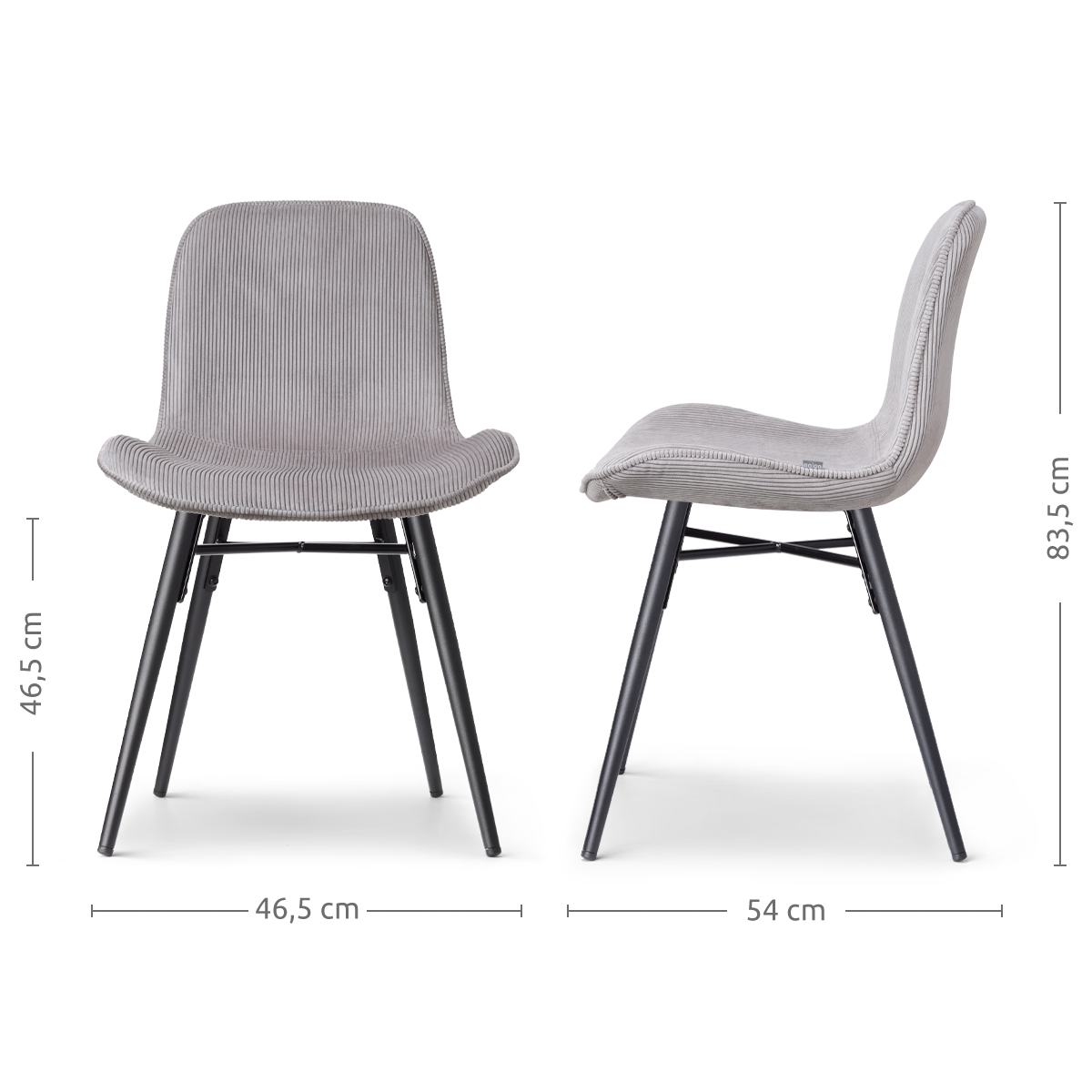 Nova-Fé eetkamerstoel rib warm grijs - zwart onderstel - set van 2