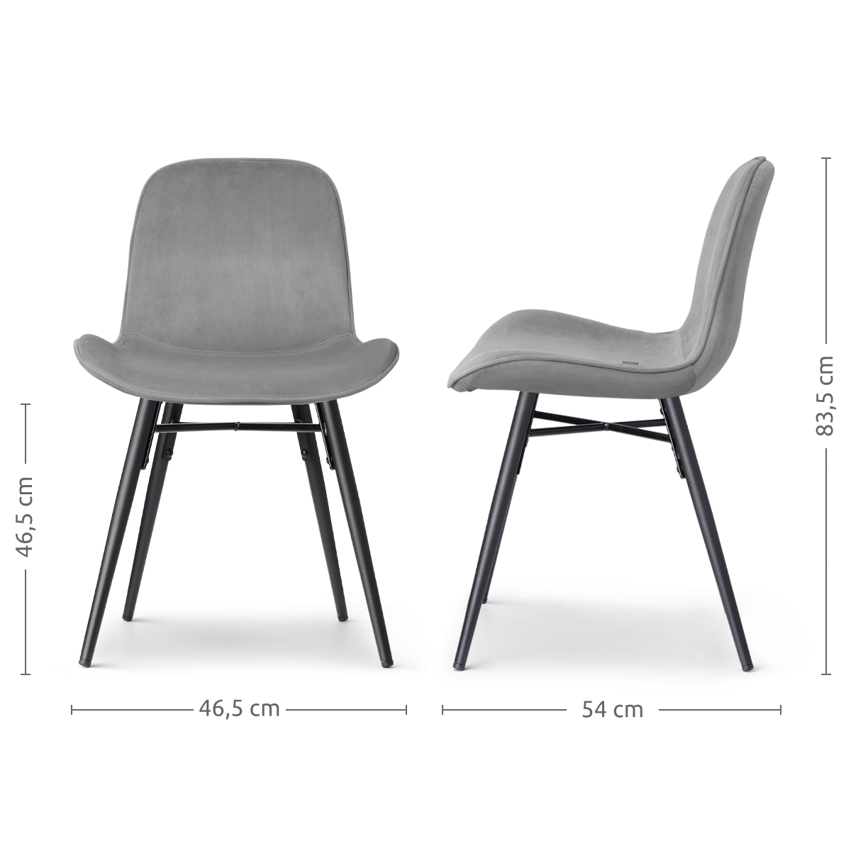 Nova-Fé eetkamerstoel velvet grijs - zwart onderstel - set van 2