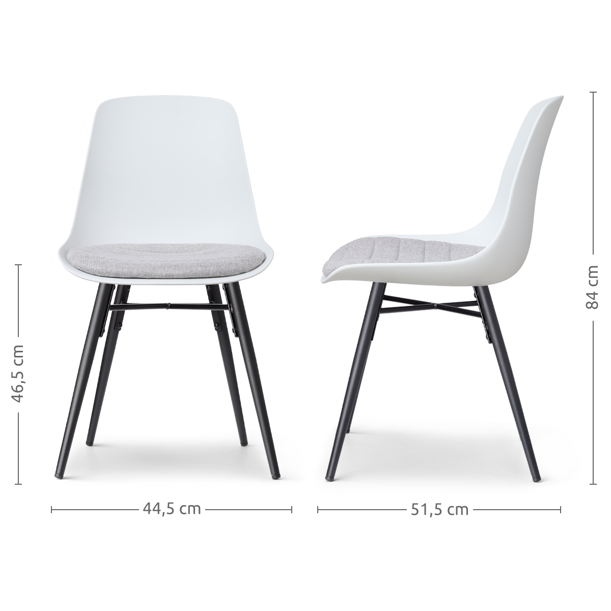 Nova-Liv eetkamerstoel wit met lichtgrijs zitkussen - zwart onderstel