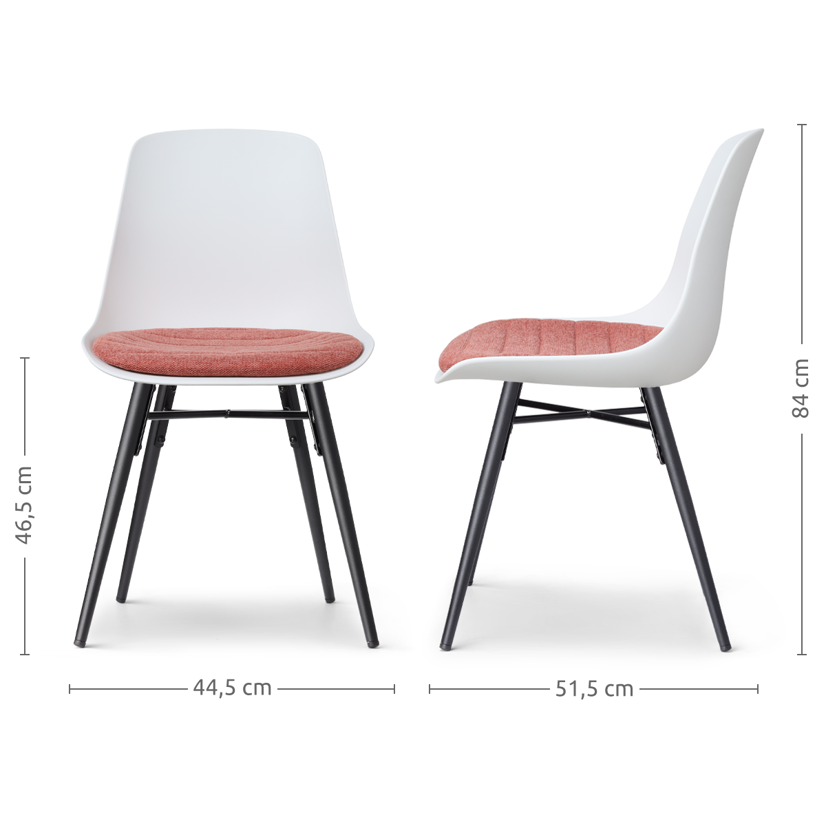 Nova-Liv eetkamerstoel wit met terracotta rood zitkussen - zwart onderstel
