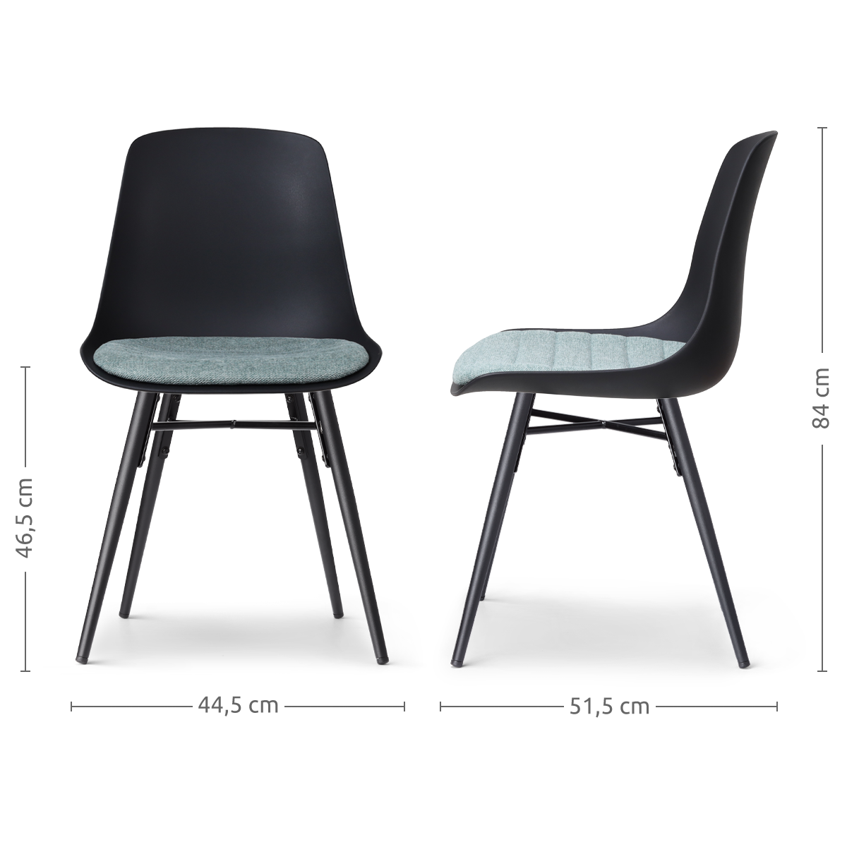 Nova-Liv eetkamerstoel zwart met zacht groen zitkussen - zwart onderstel