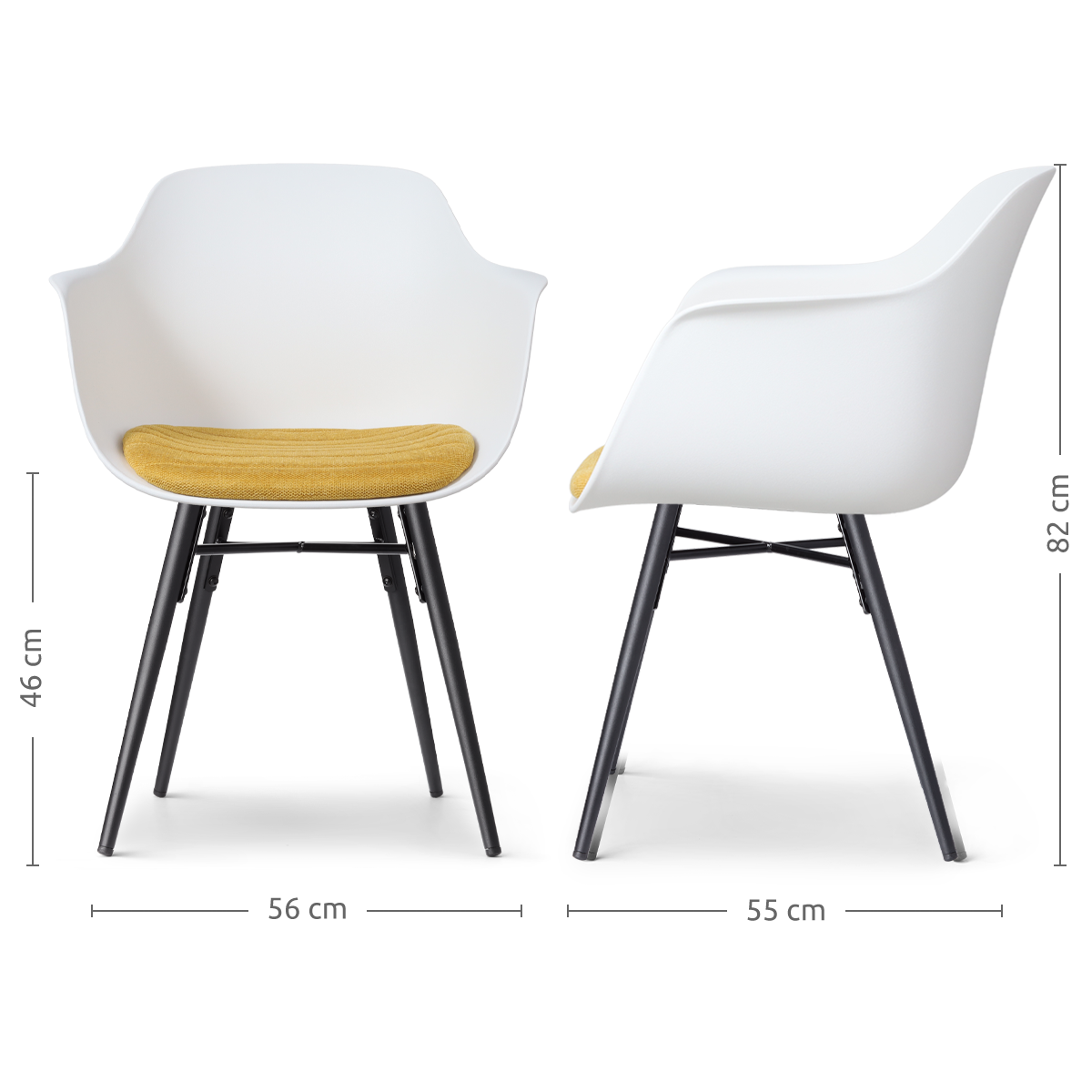 Nova-Liz eetkamerstoel wit met okergeel zitkussen - zwart onderstel