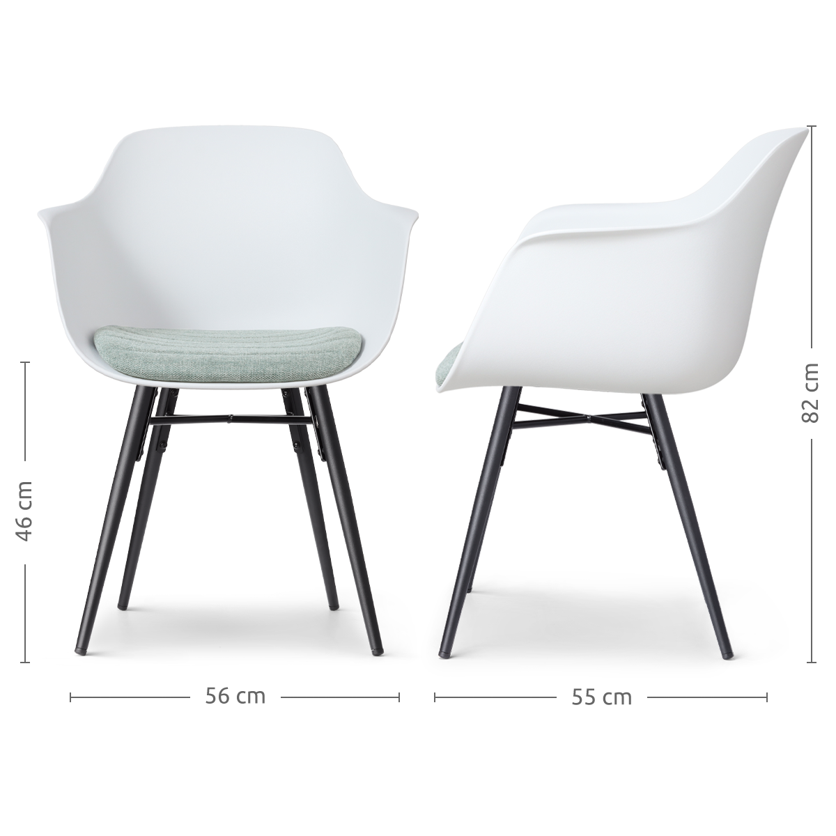 Nova-Liz eetkamerstoel wit met zacht groen zitkussen - zwart onderstel