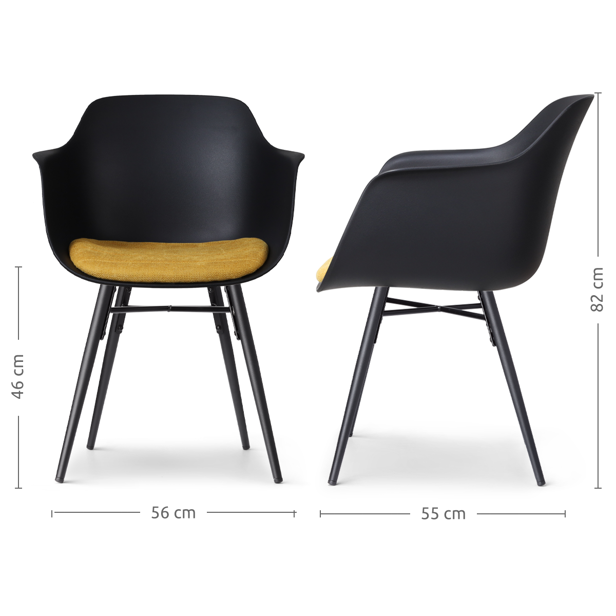 Nova-Liz eetkamerstoel zwart met okergeel zitkussen - zwart onderstel