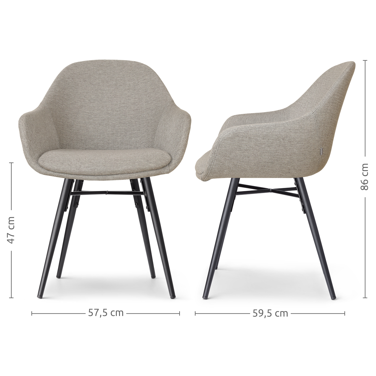 Nova-Mae eetkamerstoel warm grijs - zwart onderstel