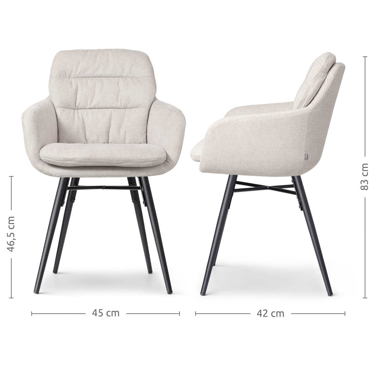 Nova-Mia eetkamerstoel beige - zwart onderstel - set van 2