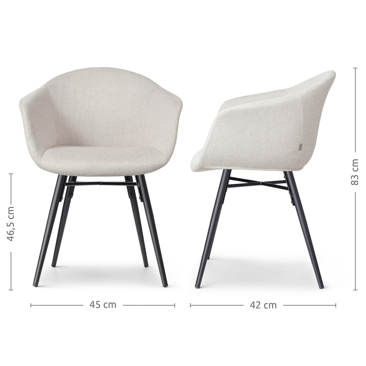 Nova-Otis eetkamerstoel beige - zwart onderstel - set van 2