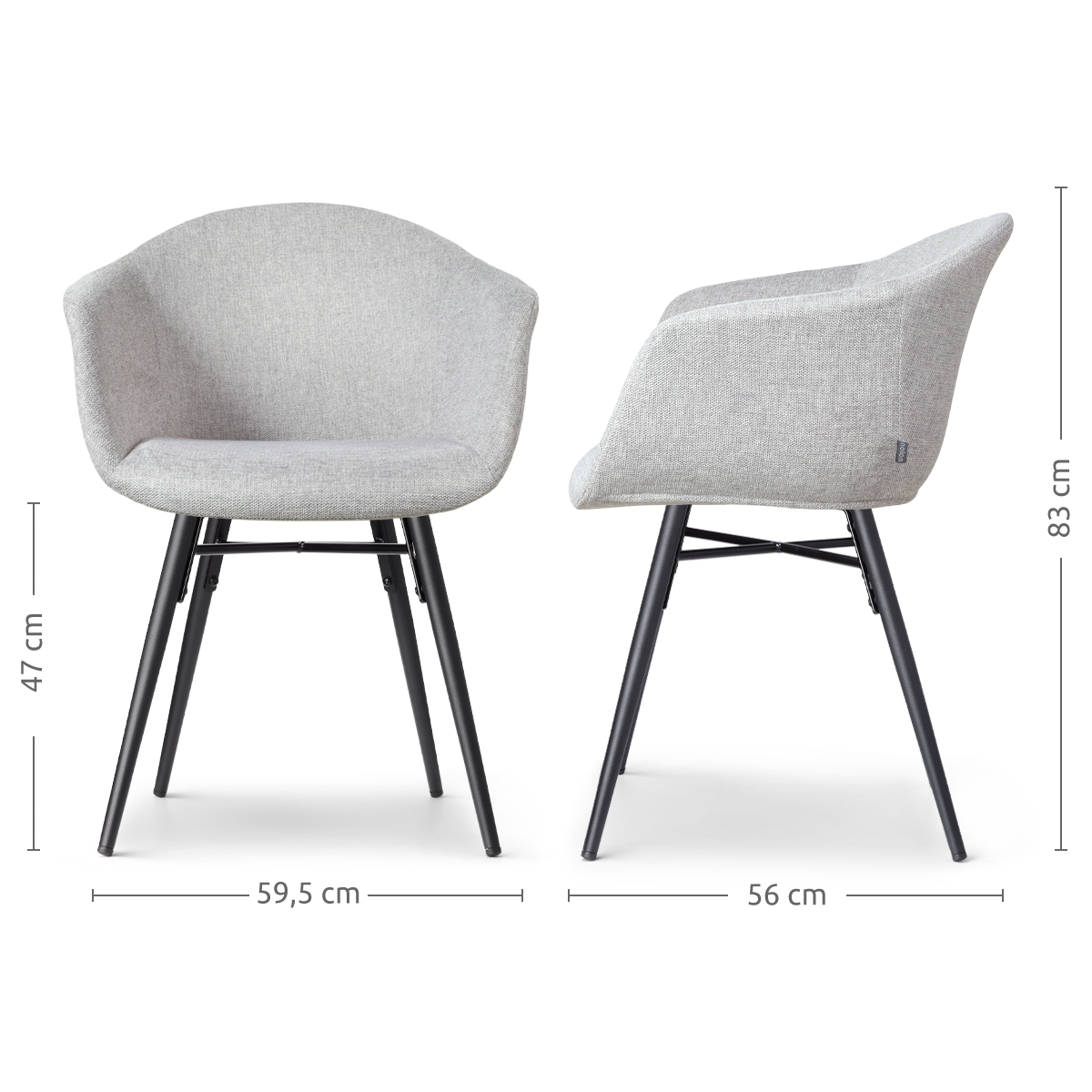 Nova-Otis eetkamerstoel lichtgrijs - zwart onderstel