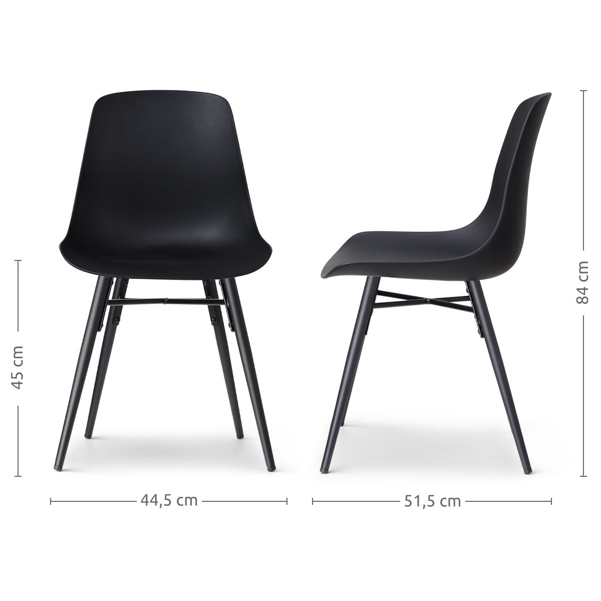 Nova-Pip eetkamerstoel zwart - zwart onderstel - set van 2