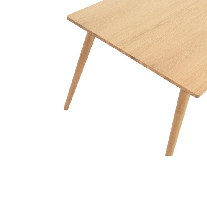 Verlengbare eettafel Boas is perfect voor urenlang natafelen na het diner! De poten van de eettafel zijn gemaakt van massief eikenhout en het tafelblad is gemaakt van hout met een laag eikenfineer. De schuine poten zorgen ervoor dat de eettafel een retro uitstraling krijgt, en door het natuurlijke materiaal past de Boas tafel helemaal bij een Scandinavische inrichting. De eettafel is met 90 cm te verlengen door aan de zijkanten een verlengstuk te plaatsen. Deze zitten niet bij de tafel inbegrepen en zijn los bij te bestellen. De Boas eettafel is twee verschillende kleuren en afmetingen verkrijgbaar. Voordelen