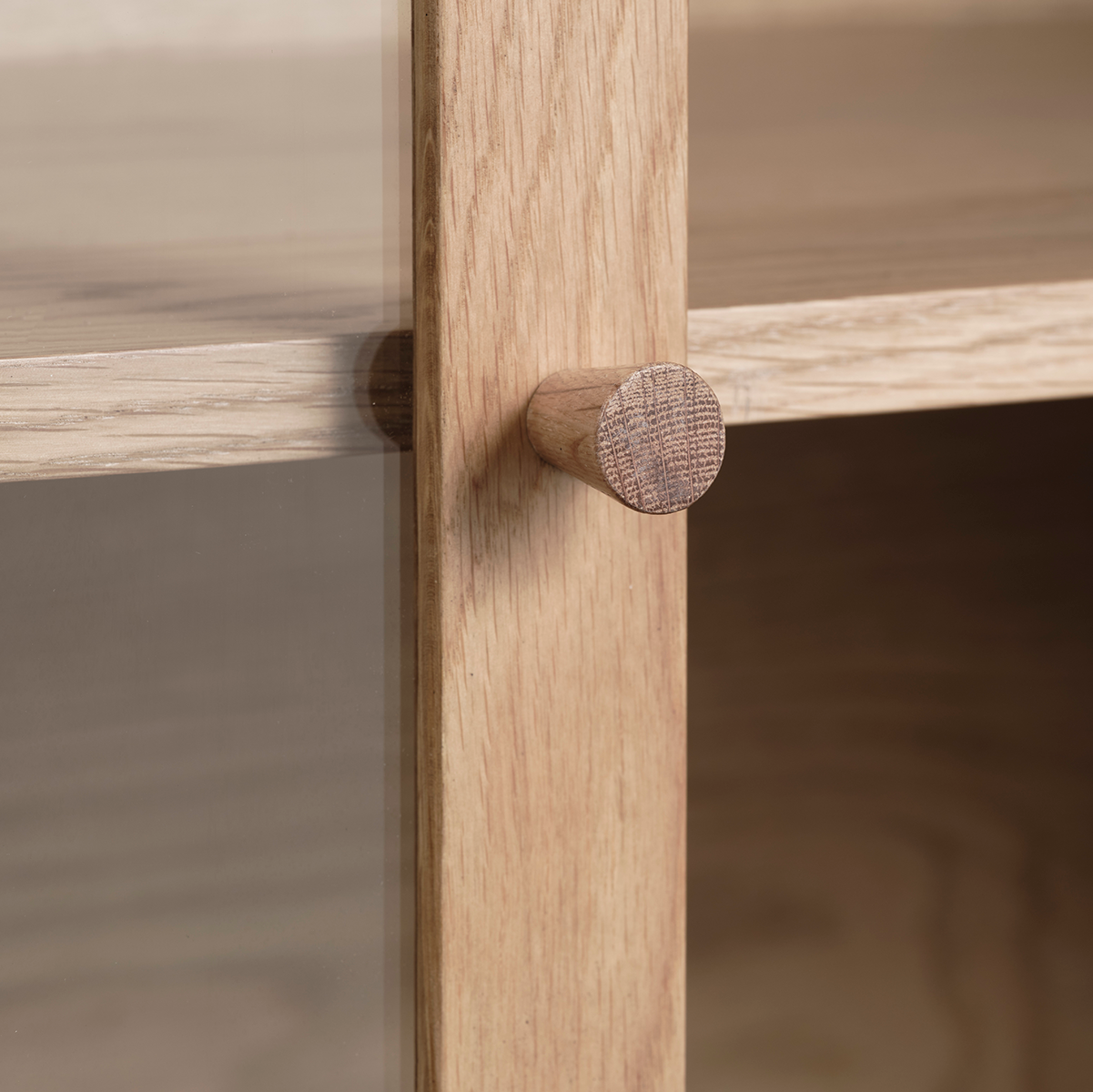 Het Boris dressoir van het merk Olivine is een houten vitrinekast met glazen deuren om je mooiste spullen in te laten zien. Het dressoir is gemaakt van hoogwaardig eikenhout, waarvan een deel het duurzame FSC-keurmerk draaft. De kast heeft drie glazen deuren die ervoor zorgen dat mooie accessoires en souvenirs op de planken goed te zien zijn. De twee planken verdelen de opbergruimte in vier ruime vakken, waarvan de vakken aan de linkerkant van de kast breder zijn.Bovendien zijn de planken 3 centimeter in hoogte verstelbaar, zodat je de hoogte kan aanpassen aan de spullen die je in de vitrinekast wil zetten. De deuren bevatten twee ronde deurknoppen om het dressoir gemakkelijk te openen. Onder andere dankzij de ronde poten heeft dit dressoir een retro uitstraling, terwijl het natuurlijke hout in naturel houtkleur perfect aansluit bij een Scandinavische woonstijl. Dankzij de lage hoogte van dit meubelstuk kan je de bovenzijde perfect gebruiken om een mooie plant of andere decoratie op te zetten. Ook een grote spiegel of poster kan je boven dit dressoir hangen om jouw kale muur om te toveren tot een stijlvol geheel. Met de andere meubels uit de Boris serie van Olivine maak je jouw inrichting nog verder compleet. Voordelen en tips: