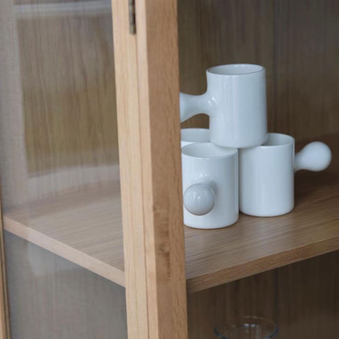 De kast is gemaakt van hoogwaardig eikenhout en heeft deuren van glas. Dankzij het ruime formaat is er voldoende ruimte om al je spullen te organiseren in deze prachtige glazen kast. De afstand tussen de planken is 39,5 centimeter, maar de planken zijn ook een stukje in hoogte verstelbaar zodat je jouw ideale indeling kan creëren. De verschillende planken bieden veel opbergruimte, waardoor je je mooiste servies, souvenirs van vakantie, tekeningen van de kinderen en kleine plantjes in de kast kwijt kan. Door de glazen deuren zijn je spullen in deze opbergkast bovendien goed te bewonderen. Wil je de spullen juist uit het zicht hebben? Zet dan een aantal mooie manden in de kast. Maak je inrichting compleet met de andere meubels uit de Boris-serie van Olivine.