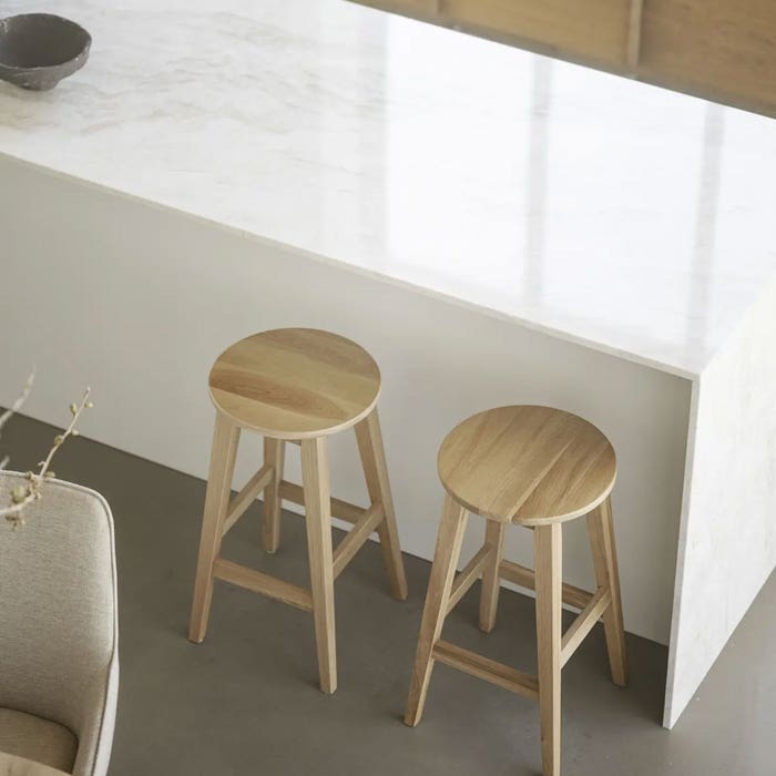 Maak je keuken helemaal af met de Austin houten barkruk van Rowico Home. De Austin barkruk is gemaakt van eikenhout en is afgewerkt met een laklaag. Het stabiele onderstel met vier schuine poten wordt bijeengehouden door een voetensteun aan alle vier zijden, wat ook voor extra zitcomfort zorgt. De barkruk heeft een platte ronde zitting waarvan de zithoogte 65 cm is. Deze hoogte is ideaal voor aan een kookeiland. De breedte en diepte van deze barkruk zijn beide 35 cm. De Austin barkruk is verkrijgbaar in twee uitvoeringen: naturel gelakt eikenhout en zwartgelakt eikenhout. Deze praktische en stijlvolle kruk met een Scandinavisch ontwerp zal in elke keuken goed staan. Voordelen