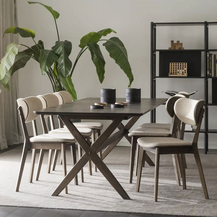 De Calverton eettafel van Rowico Home is een verlengbare houten tafel in Scandinavische stijl. Het onderstel van de eettafel is gemaakt van massief eikenhout en het tafelblad is gemaakt van hout met een laag eikenfineer. De tafel heeft kruisvormige poten en afgeronde hoeken. Dit zorgt in combinatie met de donkere houtkleur voor een retro Scandinavische uitstraling. De houten Calverton eettafel heeft al een lengte van 230 centimeter, maar kan nog eens worden verlengd tot 320 centimeter. Aan beide uiteinden kan een extra verlengstuk worden geplaatst. Deze verlengstukken dienen los bijbesteld te worden. Voordelen
