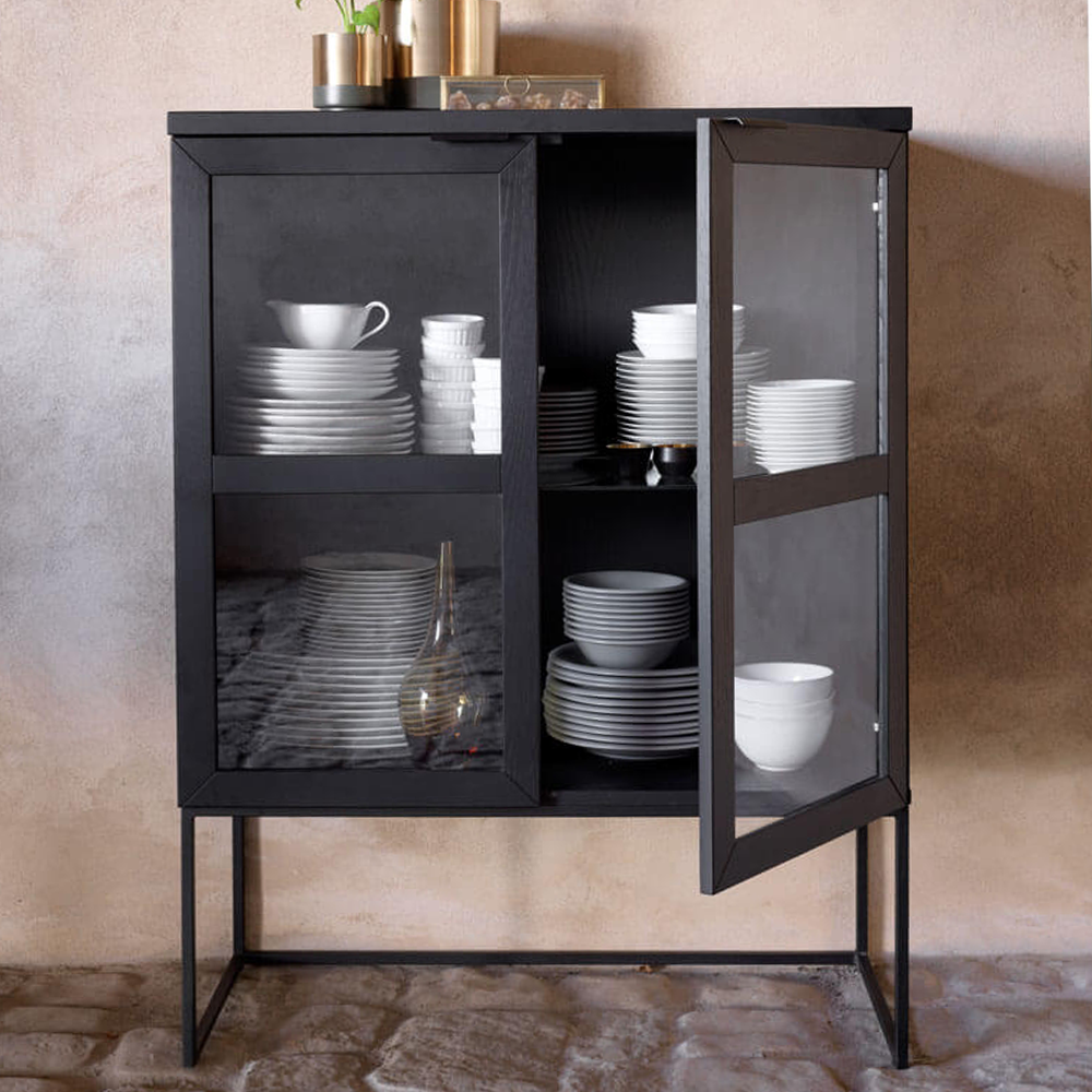 Everett houten vitrinekast zwart - 95 x 125 cm