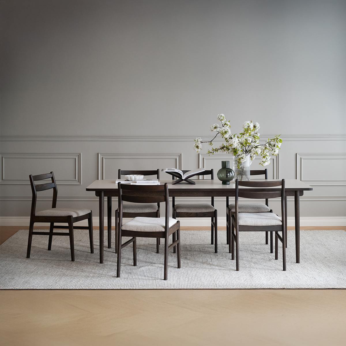 Met de houten Fairmount eettafel van Rowico haal je een stijlvolle en moderne design tafel in huis die het hart vormt van elke eetruimte. De combinatie van donker eiken met een beige tafelblad zorgt voor een warme, natuurlijke uitstraling die naadloos aansluit bij Scandinavische en Japandi interieurs. De Fairmount tafel is gemaakt van hout en heeft bruine eikenhouten poten. Het beige blad geeft de tafel een zachte, verfijnde look en maakt haar eenvoudig te combineren met zowel lichte als donkere eetkamerstoelen. Dankzij het formaat van 220 x 95 cm biedt deze tafel ruim plaats aan het hele gezin en aan gasten tijdens gezellige diners of feestelijke gelegenheden. Voordelen
