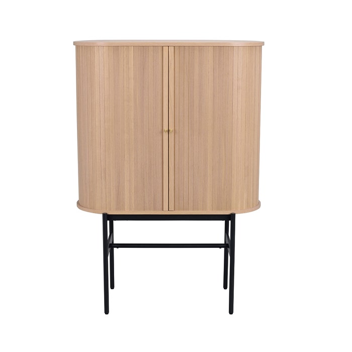 De Haddinton opbergkast van Rowico Home is een grote houten kast met schuifdeuren. Deze trendy kast zorgt voor een fijne sfeer en extra opbergruimte in huis. De opbergkast staat op hoge zwarte poten die zijn gemaakt van gepoedercoat metaal. De kast is gemaakt van hout met een laag eiken fineer in whitewash kleur. Binnenin de kast zitten 3 planken om spullen op te zetten, maar ook bovenop de kast kan je leuke accessoires, een lamp of mooie plant neerzetten. De kast is ontworpen met twee schuifdeuren, die zijn voorzien van messingkleurige deurknoppen. Combineer deze opbergkast met het Haddington bureau en dressoir voor eenheid in je interieur. Voordelen