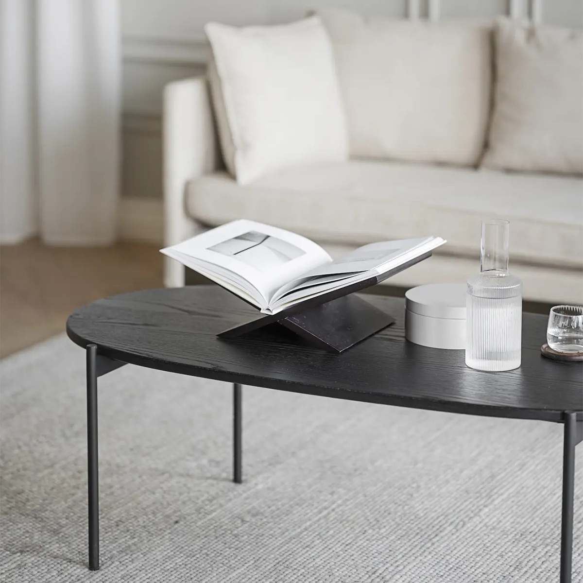 Met de Skye ovale salontafel haal je een echte blikvanger in huis. De salontafel heeft slanke metalen pootjes en een tafelblad dat is afgewerkt met een laag eikenfineer. Het moderne ontwerp van de Skye salontafel, maakt dat hij gemakkelijk overal bij past. Houd jij van het gebruik van zwart in je interieur en het maken van een statement? Dan is de Skye salontafel wat je zoekt. Deze salontafel is daarnaast goed te combineren met de andere formaten tafels uit de Skye collectie. Voordelen