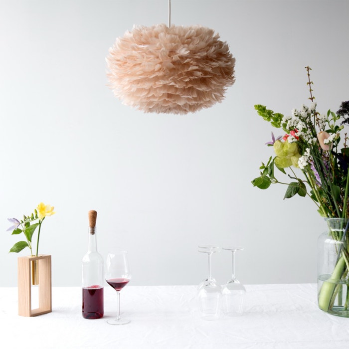 De Umage Eos Medium hanglamp is een echte blikvanger in je interieur. De hanglamp is gemaakt van echte ganzenveren. Bij wet is Umage verplicht, evenals andere grote retailers in de wereld, om te documenteren waar de ganzen en veren vandaan komen. Je kunt dus genieten van een prachtig lichteffect in je interieur, dat op milieuvriendelijke wijze tot stand is gebracht. Hang de lamp op in de slaapkamer, woonkamer of hal om direct sfeer te creëren. Bovendien onderhoud je de lamp goed door de lamp af en toe te föhnen, hierdoor blaas je gemakkelijk het stof van de veren en houd je ze luchtig! Voor meer informatie bekijk hier de montagevideo. Voordelen