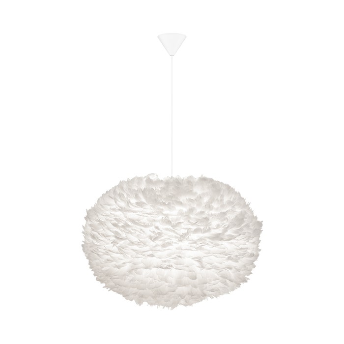De Umage Eos XL hanglamp is een echte blikvanger in je interieur. De hanglamp is gemaakt van echte ganzenveren. Bij wet is Umage verplicht, evenals andere grote retailers in de wereld, om te documenteren waar de ganzen en veren vandaan komen. Je kunt dus genieten van een prachtig lichteffect in je interieur, dat op milieuvriendelijke wijze tot stand is gebracht. Hang de lamp op in de slaapkamer, woonkamer of hal om direct sfeer te creëren. Bovendien onderhoud je de lamp goed door de lamp af en toe te föhnen, hierdoor blaas je gemakkelijk het stof van de veren en houd je ze luchtig! Voor meer informatie bekijk hier de montagevideo. Voordelen