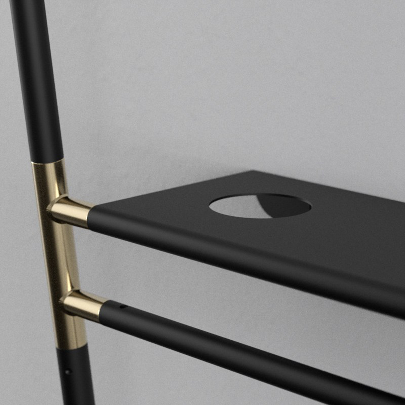 Deze prachtige Lean On Me kapstok heeft plek voor al jouw mooie spulletjes en tegelijkertijd kun je de ruimte waarin de kapstok zich bevindt optimaal benutten. Zo biedt de kapstok ruimte voor jassen, (winters)accessoires, schoenen en andere items. Daarnaast is er ook een opening gemaakt voor een paraplu. Het unieke design is ontworpen om aan de muur te worden bevestigd, waardoor de kapstok op de vloer leunt. Deze prachtige kapstok is zeker niet een standaard kapstok. De kapstok heeft een uniek design, waar elegante en robuuste materialen zijn gebruikt. Het metalen frame is afgewerkt met een matte poeder coating in combinatie met koperen details. Het lederen etui aan de bovenkant van de kapstok verzacht de strakke lijnen van het metalen frame en voegt een extra detail toe. Kortom, deze kapstok is gegarandeerd een eyecatcher in jouw gang. Voordelen