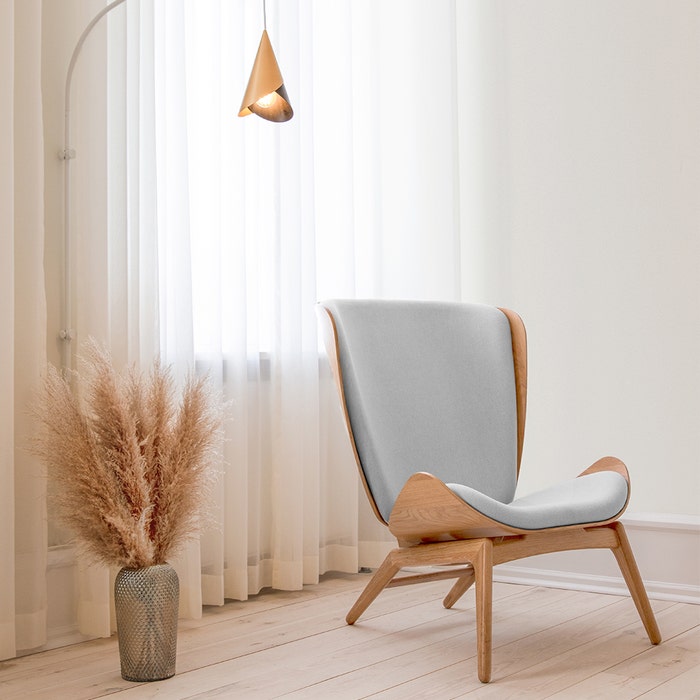 The Reader fauteuil van Umage is ontworpen om je lichaam lekker in weg te laten zakken en tot rust te komen. Het gebogen ontwerp van deze loungestoel is geïnspireerd op de traditionele Deense ambachtstechnieken en helpt omgevingsgeluid te verminderen, waardoor de stoel een plek van veiligheid en reflectie biedt. De zachte bekleding zorgt ervoor dat je extra comfortabel zit terwijl je een boek leest, tv kijkt of een dutje doet. De fauteuil heeft een frame gemaakt van massief eikenhout in naturel kleur. De zitting en rugleuning zijn bekleed met een duurzame stof uit de Horizons collectie van Umage. Deze stof is 100% gerecycled en is bovendien verwisselbaar, zodat je je inrichting kan veranderen zonder een hele nieuwe stoel te moeten kopen. The Reader fauteuil is verkrijgbaar met naturel of walnoot frame en in 5 verschillende kleuren bekleding. Voordelen