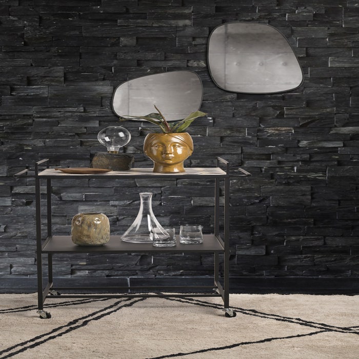 De Venja spiegel van Villa Collection is een asymmetrische wandspiegel in een organische vorm. De Venja spiegel heeft een breedte van 40 cm en een hoogte van 34 cm. Het frame van de wandspiegel is gemaakt van metaal en heeft een zwart kleur. Aan de achterzijde zitten 8 haken, waardoor je de spiegel op 4 verschillende manieren op kan hangen. Door de asymmetrische en organische vorm is Venja een speelse wanddecoratie. Wil je je muur echt omtoveren tot een blikvanger? Hang dan meerdere spiegels op en kies voor verschillende vormen en afmetingen. De Venja wandspiegel is in verschillende afmetingen verkrijgbaar. Voordelen