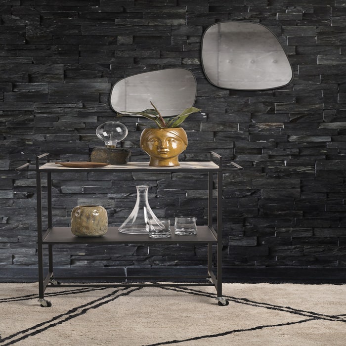 De Venja spiegel heeft een breedte van 50 cm en een hoogte van 42 cm. Het frame van de wandspiegel is gemaakt van metaal en heeft een zwart kleur. Aan de achterzijde zitten 8 haken, waardoor je de spiegel op 4 verschillende manieren op kan hangen. Door de asymmetrische en organische vorm is Venja een speelse wanddecoratie. Wil je je muur echt omtoveren tot een blikvanger? Hang dan meerdere spiegels op en kies voor verschillende vormen en afmetingen. De Venja wandspiegel is in verschillende afmetingen verkrijgbaar.